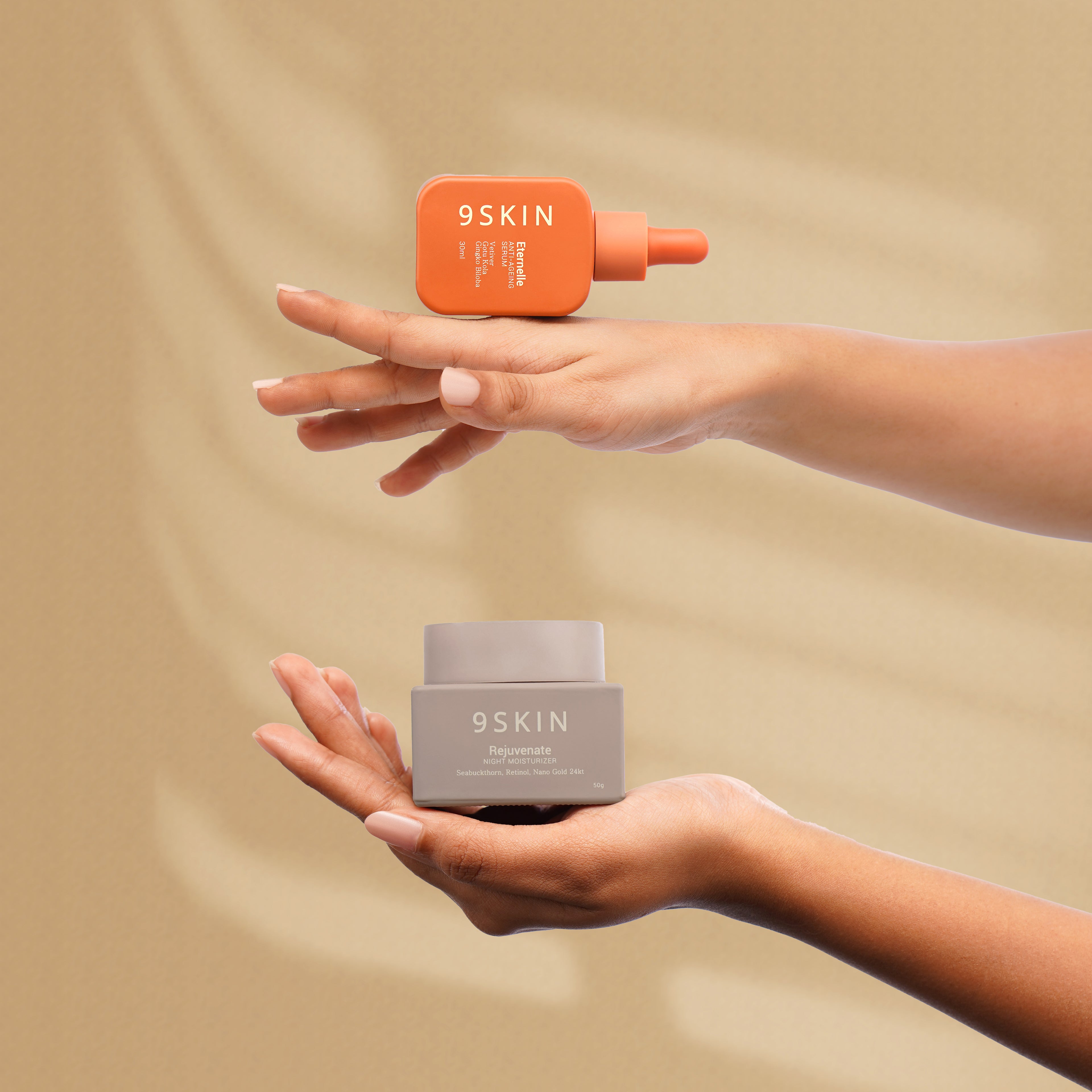Night Combo cream and serum by 9SKIN Family are formulated to work synergistically, replenishing and rejuvenating your skin while you sleep.